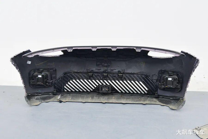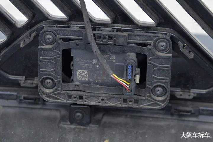 前防撞梁和保险杠之间没有缓冲泡沫,车头配有一颗ACC毫米波雷达。