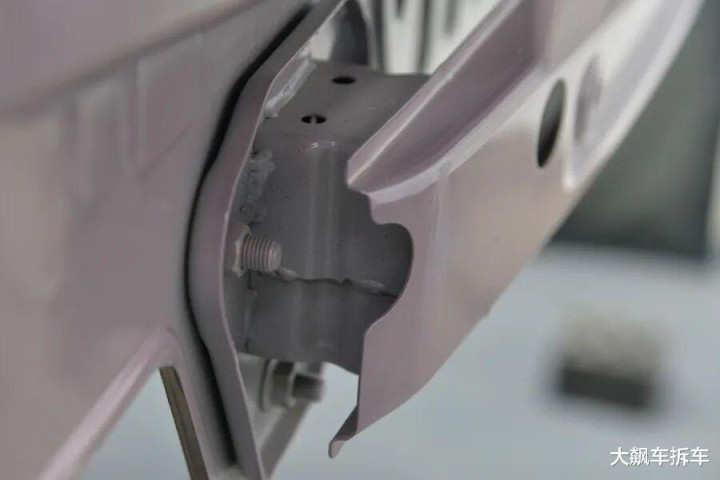 为了更好的应对25%偏置碰撞测试,纵梁前端向外凸起,扩展了前纵梁的受力范围,从而提升碰撞测试成绩。
